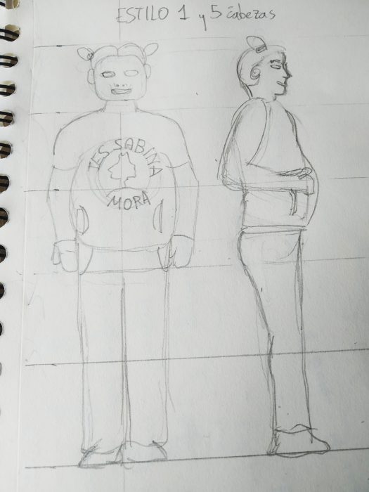Al hacer las rayas de altura todas deben medir lo mismo, hazlo con regla para que te salga bien. He hecho dos estilos, uno con 5 cabezas de altura que no me ha gustado mucho, luego he realizado otro segundo estilo, más simplificado de 4 cabezas de altura, es el que usaré para el cómic.